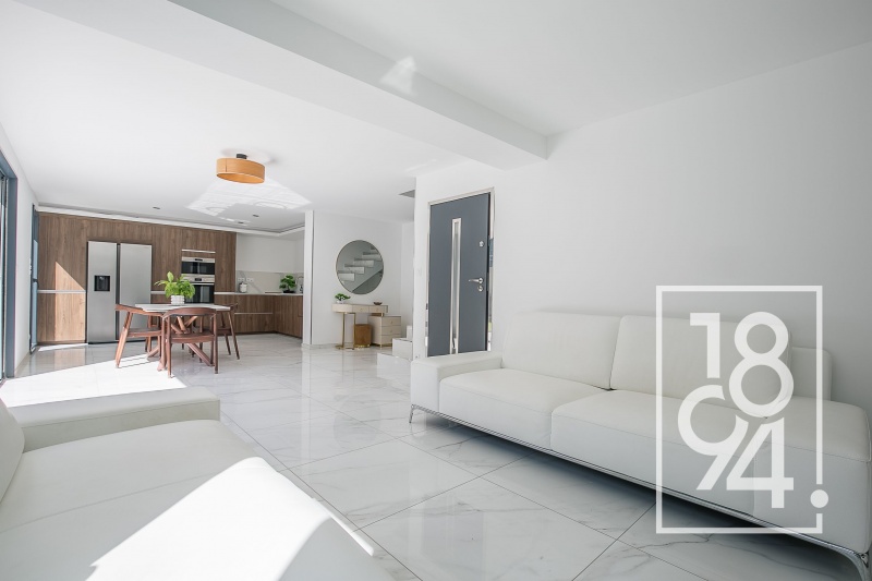 1894 L'Immobilier vous présente en exclusivité cette maison contemporaine de 6 pièces d’environ 140 m², édifiée sur une parcelle de 550 m², avec piscine, cuisine d’été et garage.