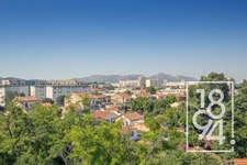 Côté sud-ouest, vous serez séduit par un vaste séjour lumineux ouvert sur une grande terrasse de 16 m² exposée sud-ouest, bénéficiant d'une vue dégagée sans vis-à-vis sur l'hippodrome et Notre-Dame de la Garde. La cuisine, séparée et entièrement équipée, bénéficie également d'un accès direct à cette terrasse, idéale pour profiter des beaux jours.