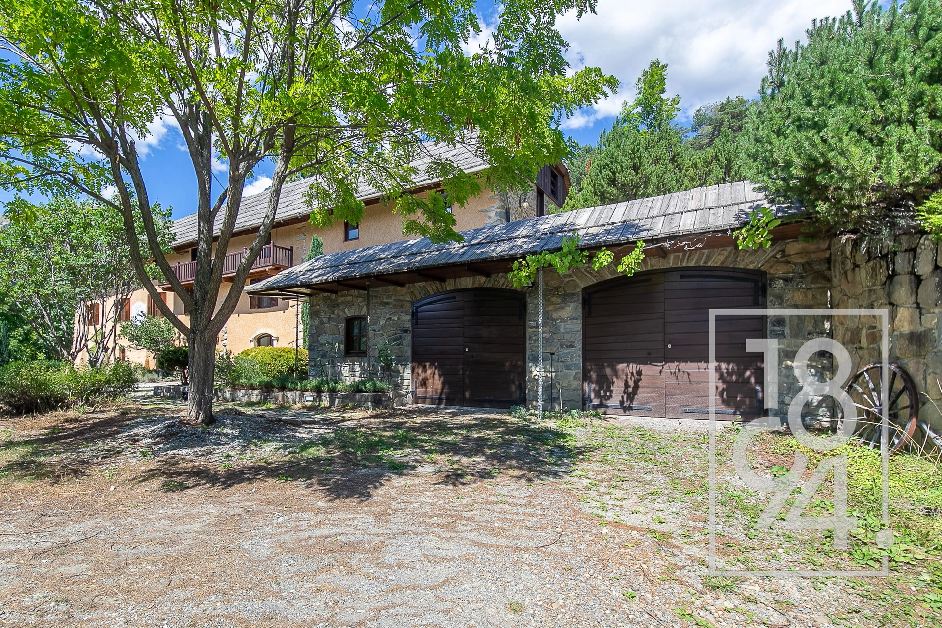 Aujourd’hui deux espaces bien distincts, un pour les propriétaires et l’autre pour le gardien des lieux. Un immense garage complète ce bien.