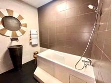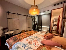 Le coin nuit se compose de deux belles chambres, chacune avec sa salle d'eau privative, l'une avec douche et l'autre avec baignoire, l'appartement bénéficie également d'un dressing pour un rangement optimal.