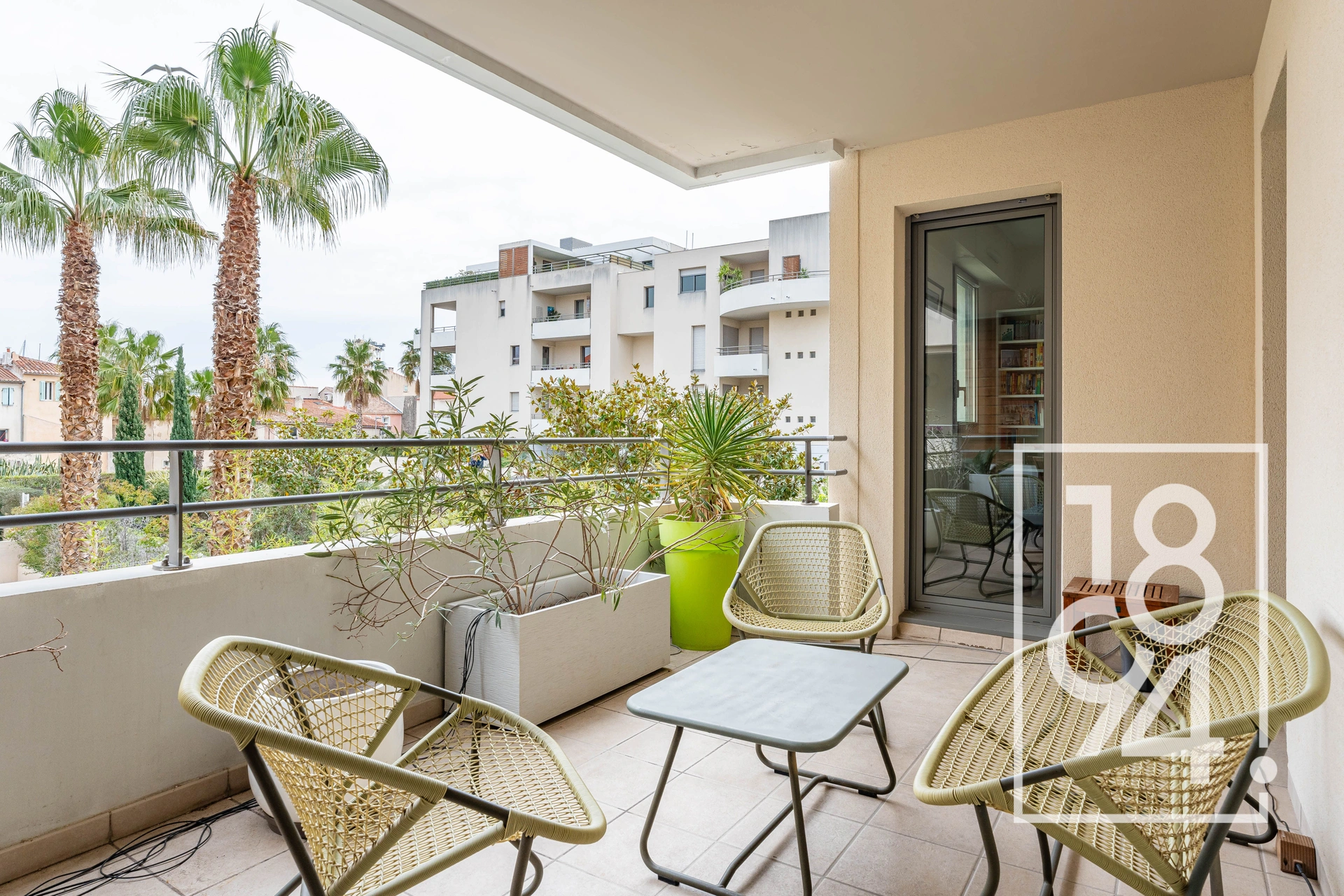 L’intégralité des pièces donnent sur l’espace terrasse ou vous pourrez profiter d’une vue sur les jardins de la copropriété .