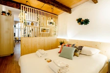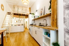 Cet habitation se compose d’une cuisine américaine donnant sur un salon/séjour, d’une chambre avec mezzanine, d’une salle d’eau et d’un WC.