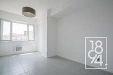 Ce bien se niche dans un immeuble signé par l’architecte Jean Crozet, célèbre pour ses réalisations de la période de reconstruction d’après-guerre. Installé au cinquième étage d’un immeuble de huit niveaux avec ascenseur, il bénéficie d’une orientation sud-ouest et d’une vue dégagée sur l’église Saint-Laurent ainsi que le fort Saint-Nicolas.