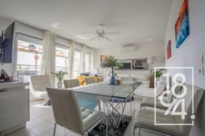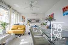 Il se compose d'une entrée avec un placard qui donne directement sur une belle pièce de vie de 36 m2 avec espace salon, coin repas et cuisine semi ouverte en L, le tout exposé plein sud et ouvert sur une belle terrasse de 30 m2 avec coin repas, salon de jardin et un espace en bout actuellement aménagé avec une cuisine d'été équipée d'arrivée d'eau et d'évacuations pour pouvoir cuisiner dehors comme dans une vraie cuisine.