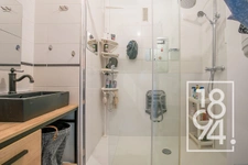 Une salle de bain moderne et des toilettes séparés viennent compléter l’ensemble.