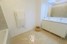 🔹 Appt. T4 au rez-de-chaussée d'une superficie de 75,65 m² orienté au Sud-Est, avec une terrasse de 11,33 m² et un balcon de 4,18 m². Il se compose d'une entrée, d'un séjour/cuisine de 22,31 m², de 3 chambres de 13,05 m², 10,26 m² et 9,01 m², d'une salle de bain avec baignoire et de 2 WC indépendants.