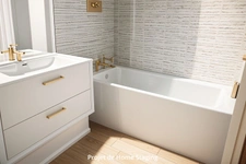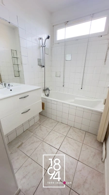 Salle de bains de 4 m² avec baignoire et meuble vasque récent.