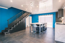 Sur une terrain de 245 m2 et sur deux niveaux, elle se compose d'une pièce de vie, d'une cuisine ouverte, d'une buanderie, d'un garage et de trois chambres pour une superficie de 86m2