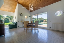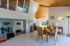 Cette maison d’architecte vous séduira par ses volumes et ses espaces généreux. En y pénétrant, vous découvrirez une magnifique pièce de vie baignée de lumière, organisée autour d’une cheminée avec insert.