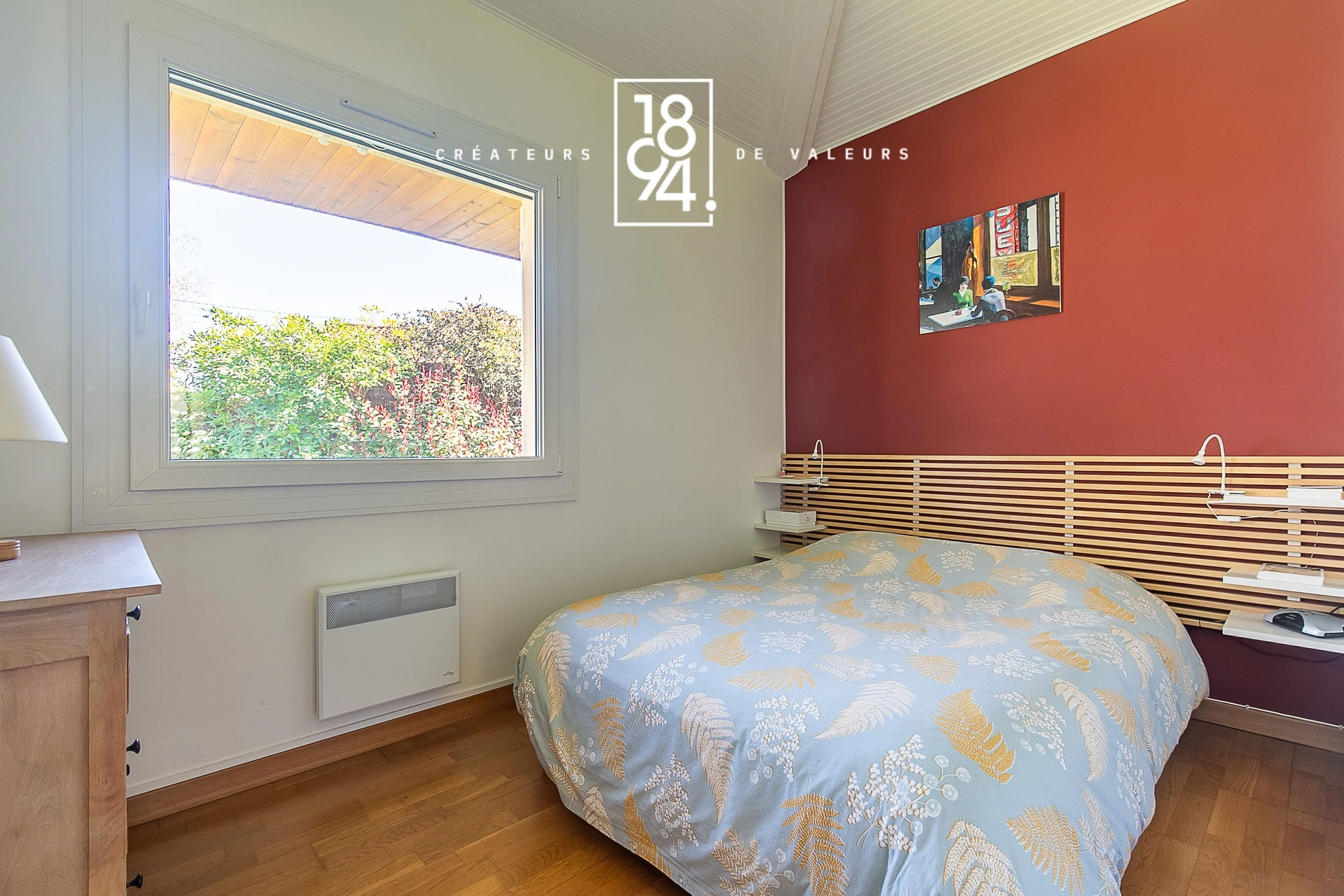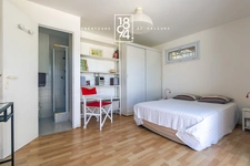 À l’étage, telle une véritable « cabine du commandant », une magnifique suite vous attend : une chambre spacieuse avec sa salle de bain privative, son dressing et ses toilettes.