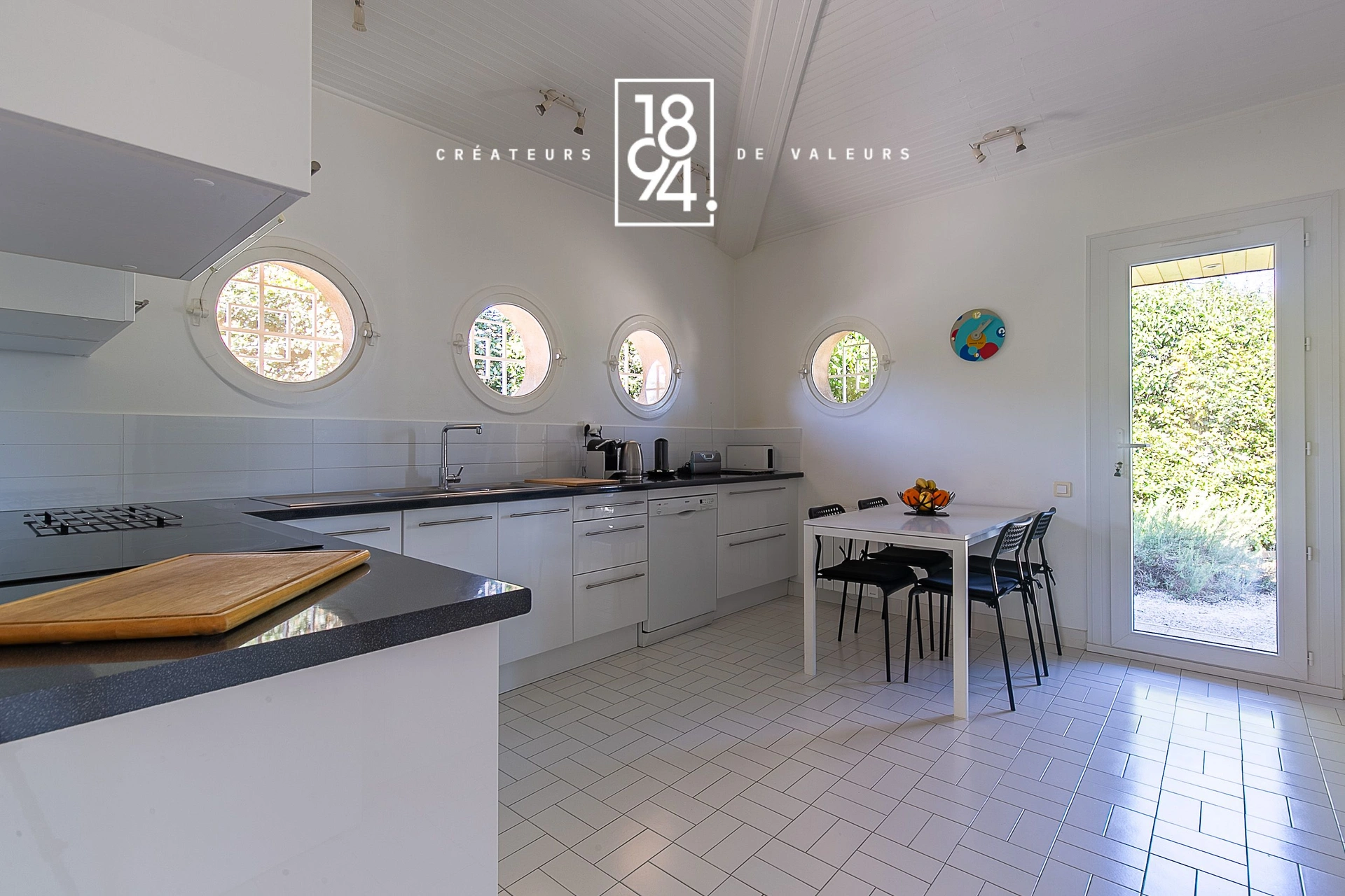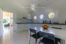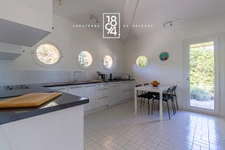 La cuisine indépendante se distingue par ses fenêtres arrondies qui évoquent l’atmosphère d’un bateau, lui conférant un cachet unique ou vous pourrez exercer vos talents de cuisinier. Elle est complétée par un cellier particulièrement pratique pour le rangement.