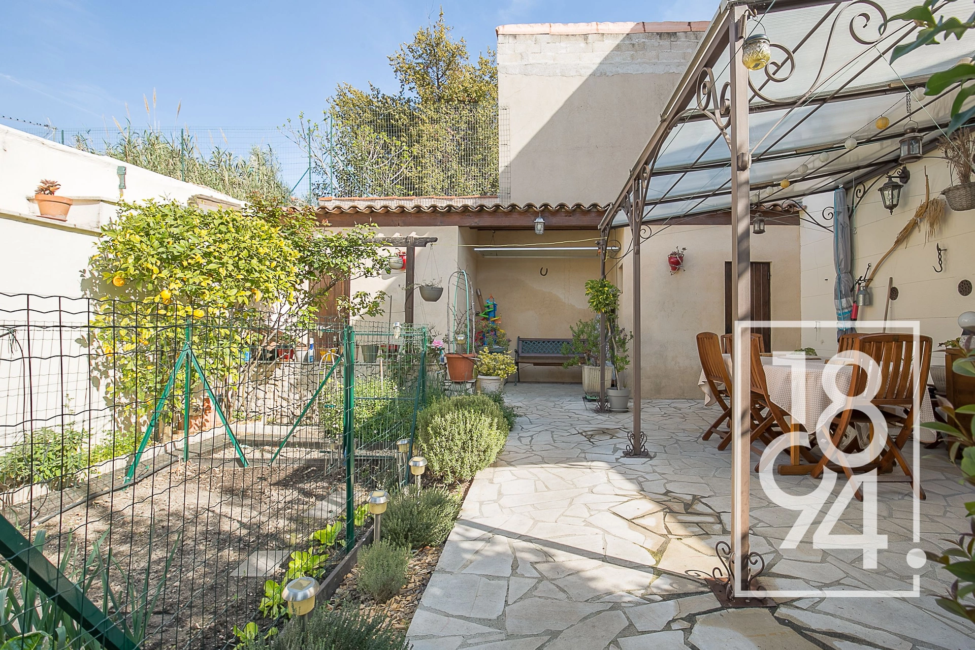 1894 L'immobilier - agence immobilière Marseille vous présente à la vente une Maison individuelle d'environ 100 m2 (97 en équivalent carrez) sur deux niveaux, sur une parcelle de terrain de 234 m2, avec la totalité du jardin à l'arrière de la maison complètement au calme, entre le 4e et le 12e arrondissement, boulevard de Roux.