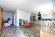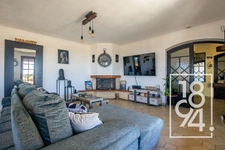 Elle se compose d'un salon / salle à manger ( 34 m2 ) avec cheminée, une cuisine attenante ( 13m2 env. ) donnant sur une belle terrasse ( 32 m2 ) avec vue.