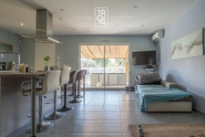 Elle se compose d'un salon / salle à manger et cuisine ouverte de ( 43,19 m2 env. ), donnant sur une belle terrasse , piscine, cuisine d'été...